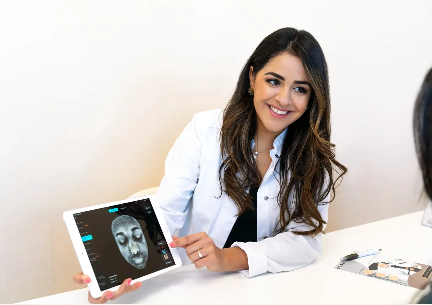 Onze specialist analyseert je huid met de EVE M Skin Analyzer en stelt een persoonlijk plan op.