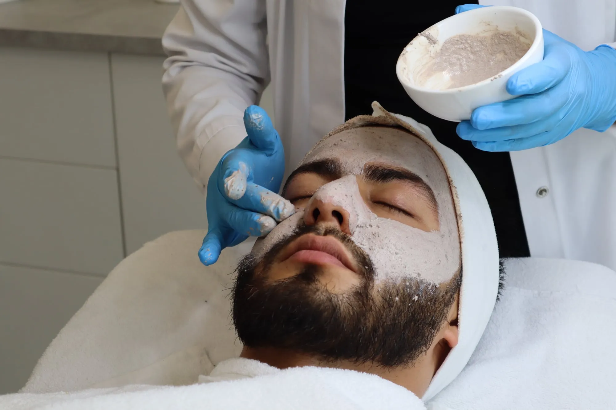 De huid wordt grondig gereinigd ter voorbereiding op de peeling.